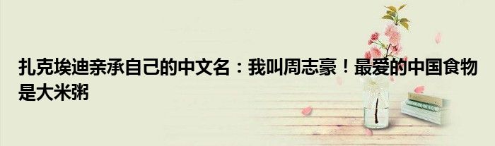 扎克埃迪亲承自己的中文名:我叫周志豪!最爱的中国食物是大米粥。