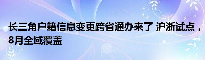 长三角户籍信息变更跨省通办来了 沪浙试点,8月全域覆盖