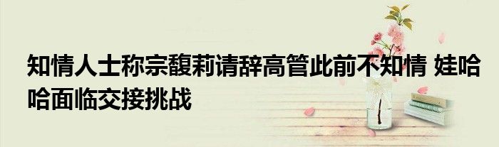 知情人士称宗馥莉请辞高管此前不知情 娃哈哈面临交接挑战