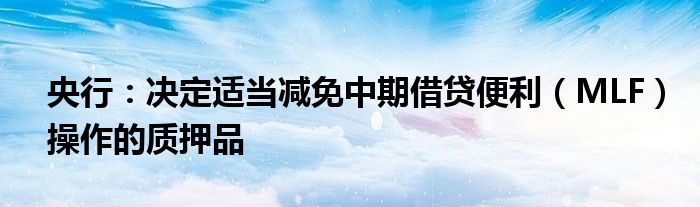 央行:决定适当减免中期借贷便利(MLF)操作的质押品