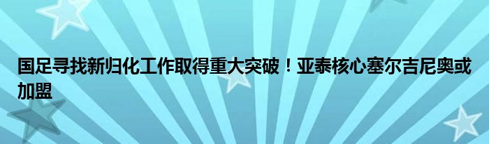 国足寻找新归化工作取得重大突破!亚泰核心塞尔吉尼奥或加盟