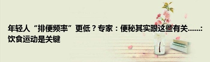年轻人“排便频率”更低?专家:便秘其实跟这些有关......:饮食运动是关键