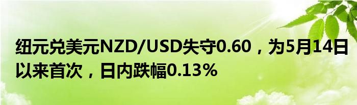 纽元兑美元NZD/USD失守0.60,为5月14日以来首次,日内跌幅0.13%