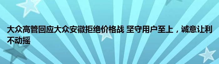 大众高管回应大众安徽拒绝价格战 坚守用户至上,诚意让利不动摇