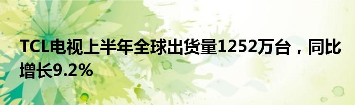 TCL电视上半年全球出货量1252万台,同比增长9.2%