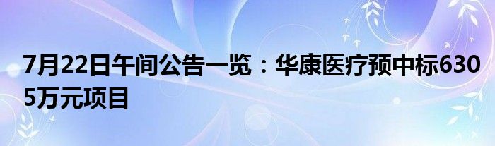 7月22日午间公告一览:华康医疗预中标6305万元项目