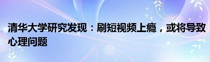 清华大学研究发现:刷短视频上瘾,或将导致心理问题