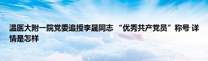 【温医大附一院党委追授李晟同志 “优秀共产党员”称号】大家可以一起来了解一下这是什么情况!