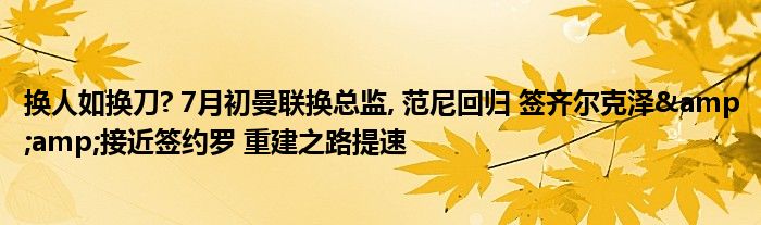 换人如换刀? 7月初曼联换总监, 范尼回归 签齐尔克泽&接近签约罗 重建之路提速