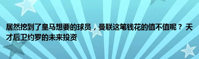 居然挖到了皇马想要的球员,曼联这笔钱花的值不值呢? 天才后卫约罗的未来投资