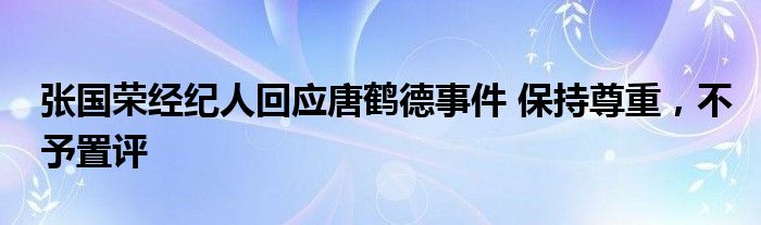 张国荣经纪人回应唐鹤德事件 保持尊重,不予置评