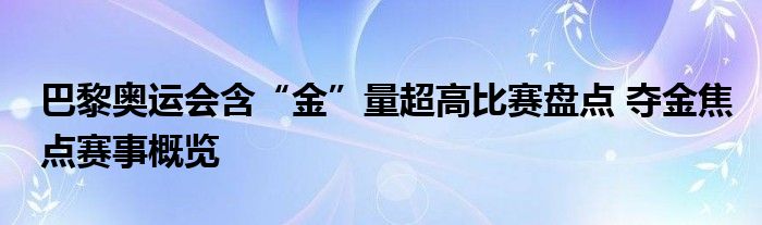 巴黎奥运会含“金”量超高比赛盘点 夺金焦点赛事概览