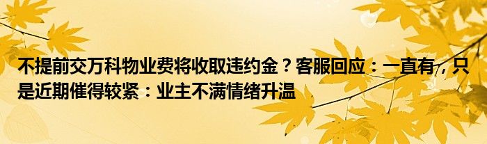 不提前交万科物业费将收取违约金?客服回应:一直有,只是近期催得较紧:业主不满情绪升温