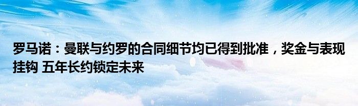 罗马诺:曼联与约罗的合同细节均已得到批准,奖金与表现挂钩 五年长约锁定未来