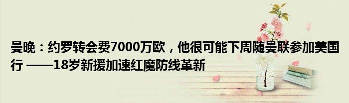 曼晚:约罗转会费7000万欧,他很可能下周随曼联参加美国行 ——18岁新援加速红魔防线革新