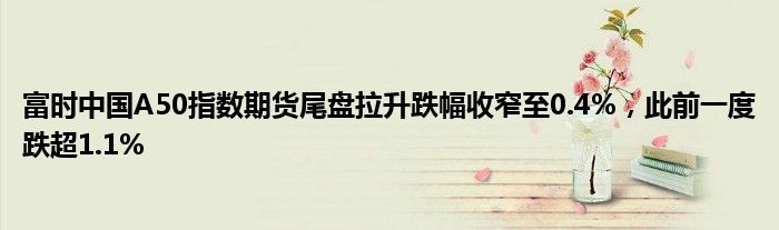 富时中国A50指数期货尾盘拉升跌幅收窄至0.4%,此前一度跌超1.1%