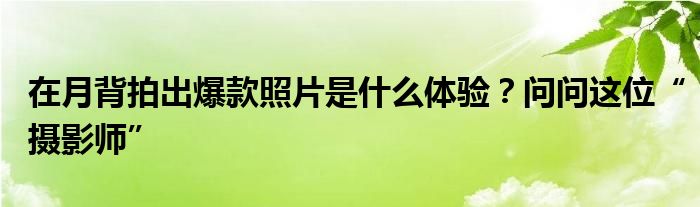 在月背拍出爆款照片是什么体验?问问这位“摄影师”