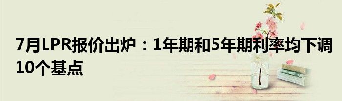 7月LPR报价出炉:1年期和5年期利率均下调10个基点