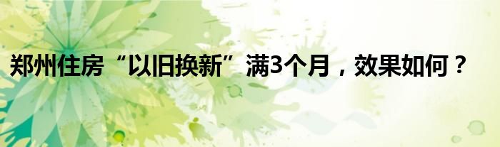 4月20日,郑州市住房“卖旧买新、以旧换新”试点阶段收购工作正式启动。时隔3个月,郑州住房“以旧换新”效果如何?