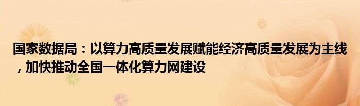 国家数据局:以算力高质量发展赋能经济高质量发展为主线,加快推动全国一体化算力网建设