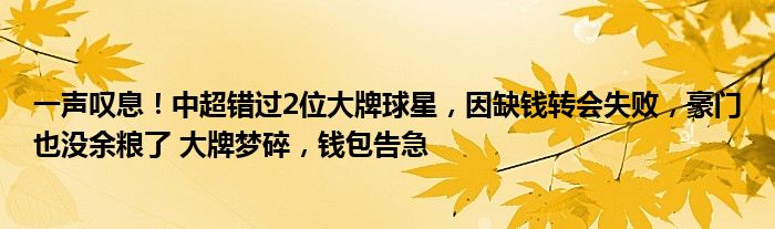 一声叹息!中超错过2位大牌球星,因缺钱转会失败,豪门也没余粮了 大牌梦碎,钱包告急