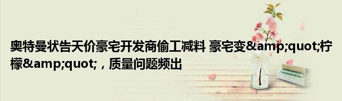 奥特曼状告天价豪宅开发商偷工减料 豪宅变"柠檬",质量问题频出