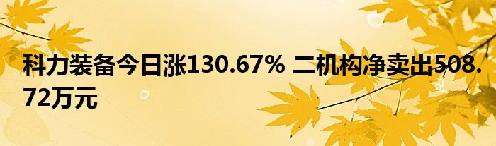科力装备今日涨130.67% 二机构净卖出508.72万元
