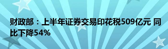财政部:上半年证券交易印花税509亿元 同比下降54%