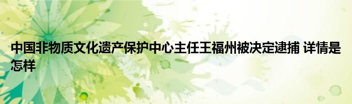 【中国非物质文化遗产保护中心主任王福州被决定逮捕】大家可以一起来了解一下这是什么情况!