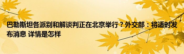 【巴勒斯坦各派别和解谈判正在北京举行?外交部:将适时发布消息】大家可以一起来了解一下这是什么情况!