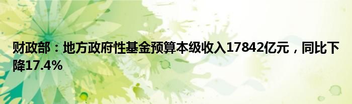 财政部:地方政府性基金预算本级收入17842亿元,同比下降17.4%