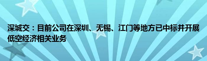 深城交:目前公司在深圳、无锡、江门等地方已中标并开展低空经济相关业务