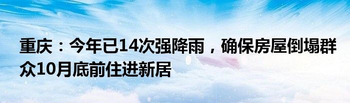 重庆:今年已14次强降雨,确保房屋倒塌群众10月底前住进新居