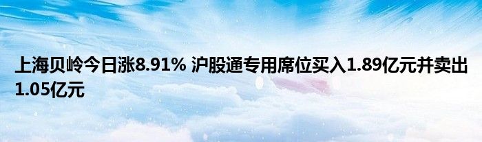 上海贝岭今日涨8.91% 沪股通专用席位买入1.89亿元并卖出1.05亿元