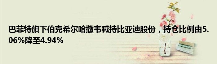 巴菲特旗下伯克希尔哈撒韦减持比亚迪股份,持仓比例由5.06%降至4.94%