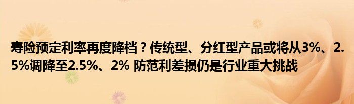 寿险预定利率再度降档?传统型、分红型产品或将从3%、2.5%调降至2.5%、2% 防范利差损仍是行业重大挑战
