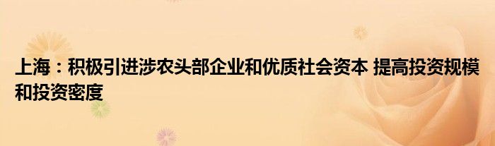 上海:积极引进涉农头部企业和优质社会资本 提高投资规模和投资密度