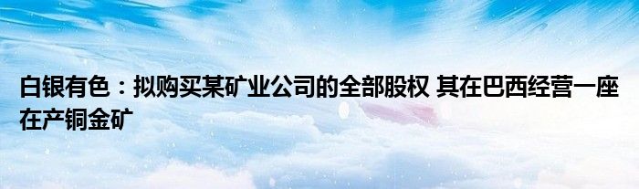 白银有色:拟购买某矿业公司的全部股权 其在巴西经营一座在产铜金矿