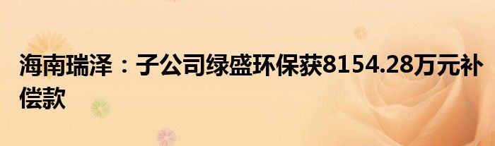 海南瑞泽:子公司绿盛环保获8154.28万元补偿款