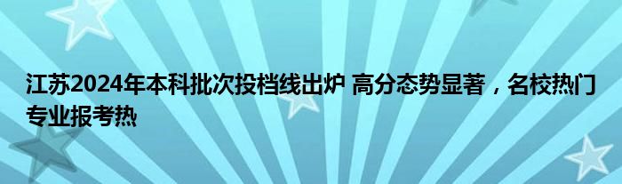 江苏2024年本科批次投档线出炉 高分态势显著,名校热门专业报考热