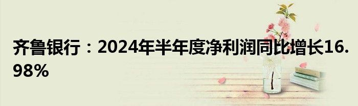 齐鲁银行:2024年半年度净利润同比增长16.98%