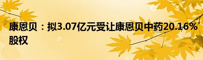 康恩贝:拟3.07亿元受让康恩贝中药20.16%股权