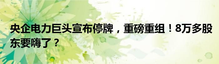 央企电力巨头宣布停牌,重磅重组!8万多股东要嗨了?