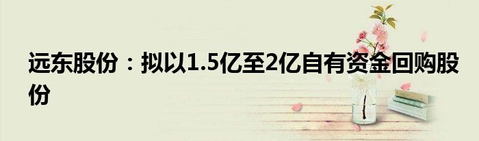 远东股份:拟以1.5亿至2亿自有资金回购股份