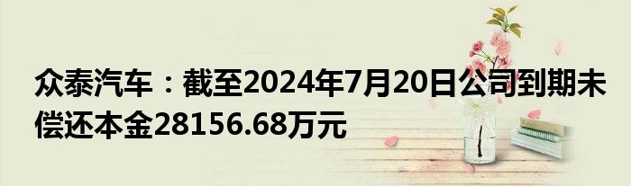 众泰汽车:截至2024年7月20日公司到期未偿还本金28156.68万元