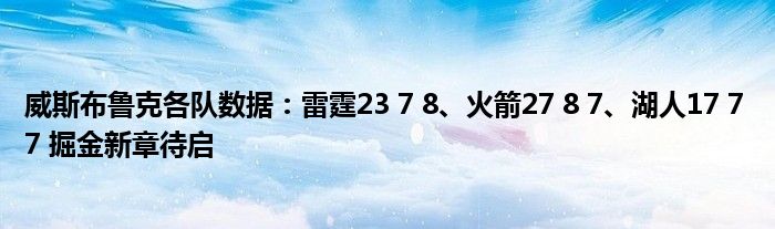 威斯布鲁克各队数据:雷霆23 7 8、火箭27 8 7、湖人17 7 7 掘金新章待启