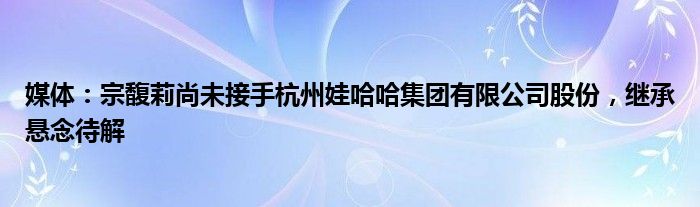 媒体:宗馥莉尚未接手杭州娃哈哈集团有限公司股份。