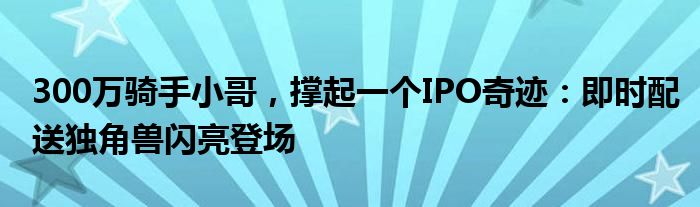 300万骑手小哥,撑起一个IPO奇迹:即时配送独角兽闪亮登场