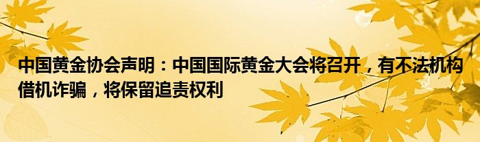 中国黄金协会声明:中国国际黄金大会将召开,有不法机构借机诈骗,将保留追责权利