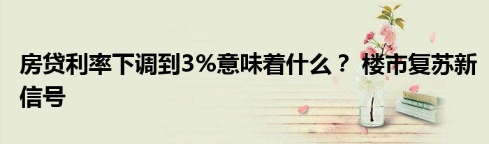 房贷利率下调到3%意味着什么? 楼市复苏新信号